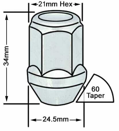 Ford alloy wheel nuts. M14 x 1.5, 21mm Hex set of 5