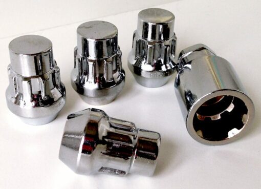 A set of 20 closed nuts, including 4 locking nuts and unique key, for use with alloy wheels.